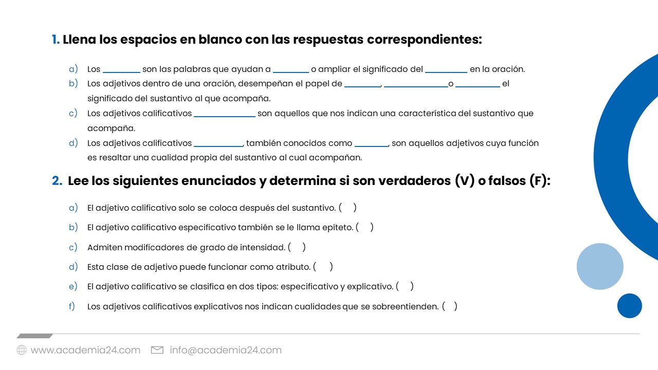 El adjetivo: Adjetivos calificativos
