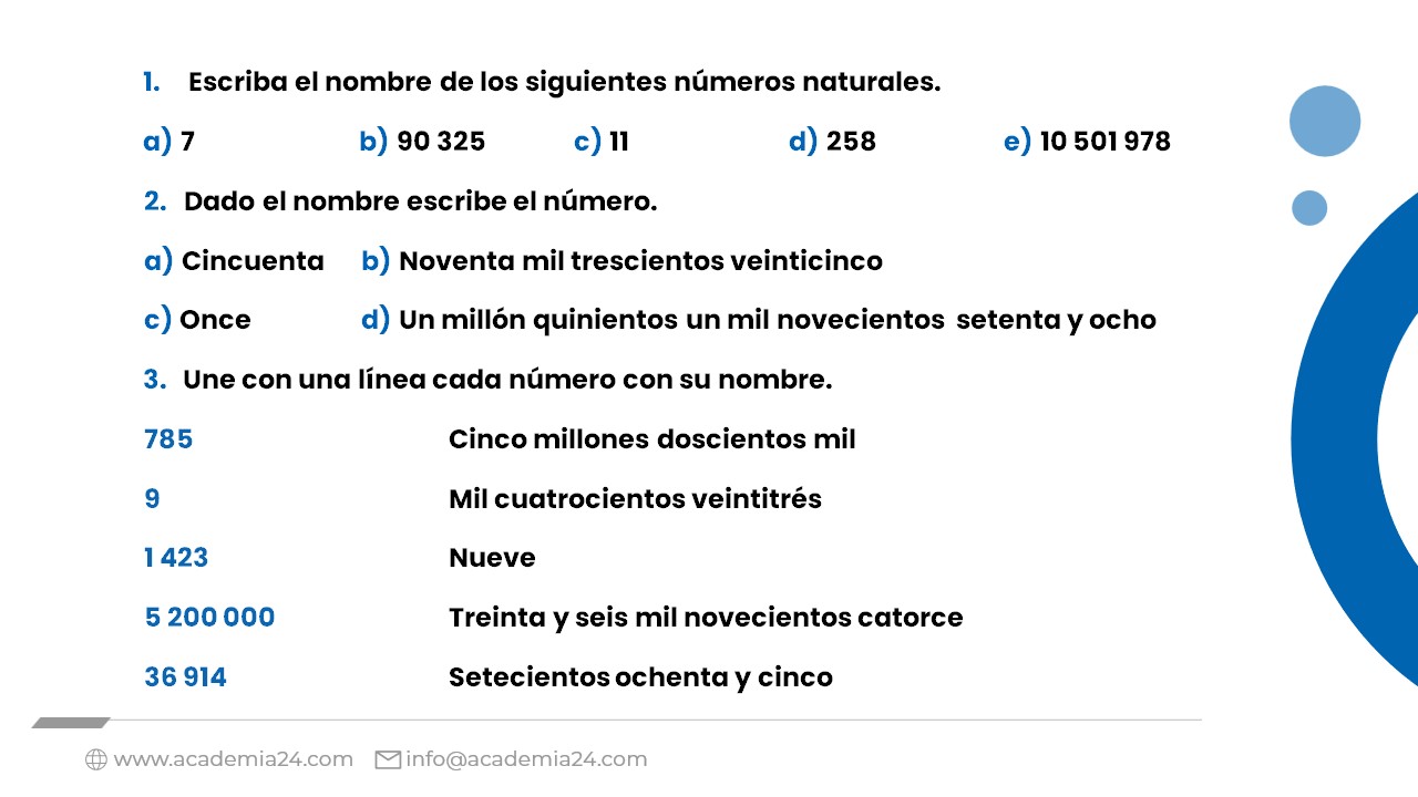 Lectoescritura de números naturales hasta la unidad de millón